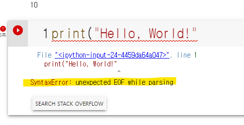 ex. print()함수에서 소괄호 하나를 빼먹은 경우