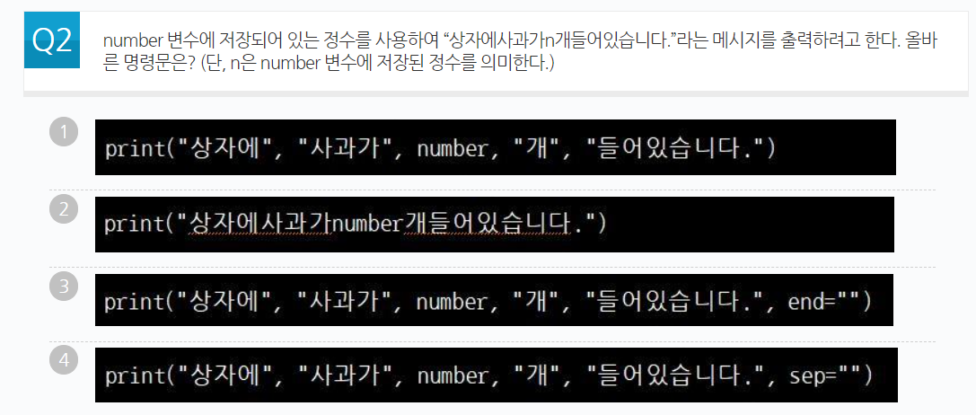 보기 3번은 print함수를 한 줄만 적어 놓았기 때문에 사용하는 의미가 없음.