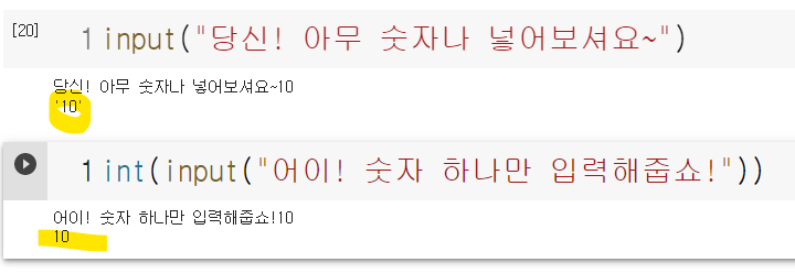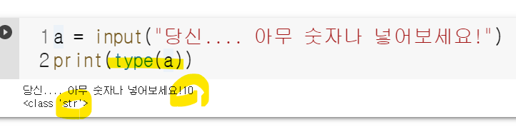 type함수를 통해 입력한 숫자 10은 str(문자)임을 알 수 있음.