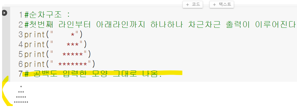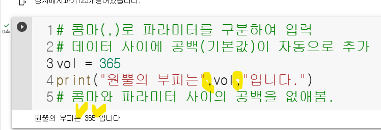 → 콤마로 구분되는 곳마다 공백이 자동으로 출력되어 나옴.