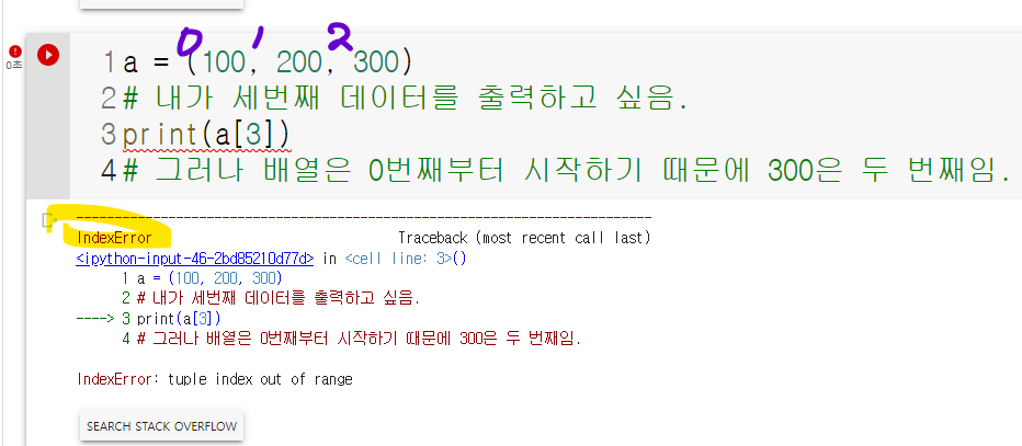 - 가장 찾기 쉬운 오류임. 프로그램 자체에서 오류를 표시하는 기능이 있음.