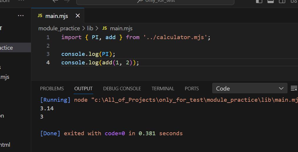 · 모듈 문법을 활용하기 위해서는 mjs 확장자를 사용해야함.