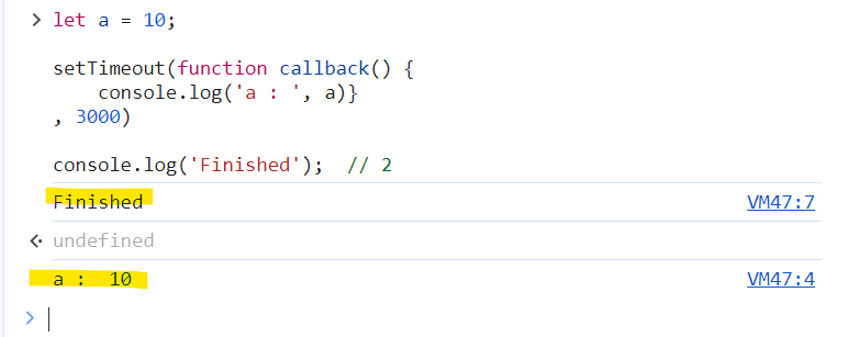 - setTimeout : 지정한 시간(ms)만큼 기다렸다가 콜백 함수를 실행하는데, 이때 시간이 0ms라도 콜백함수는 현재 이벤트 루프가 끝난 후에 실행된다. 즉, 이전에 등록한 비동기 작업들이 먼저 실행된다는 의미이다.