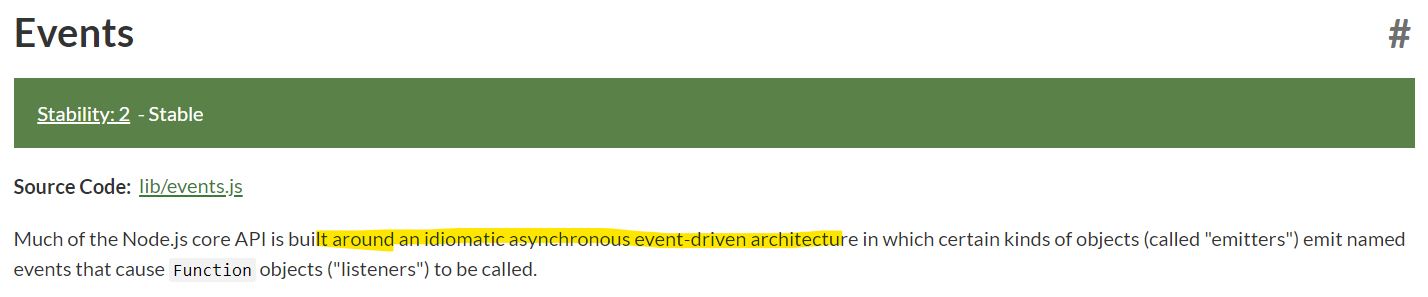 Node.js에서 제공하는 주요 API들은 이벤트 기반 구조 위에서 생성되었고, 그 구조에서는 특정 객체가 이벤트를 발생시키면 그 이벤트에 관한 콜백이 실행된다.