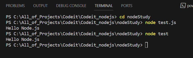 해당 파일(test.js) 실행
