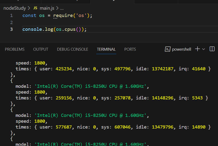 - require가 반환하는 객체를 사용하기 위해서 그 객체를 변수에 대입해주면 됨.