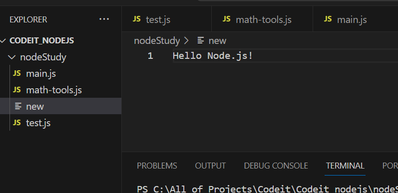 자바스크립트 코드를 노드로 실행할 때는 파일 이름에 꼭 js라는 확장자를 붙이지 않아도 됨.