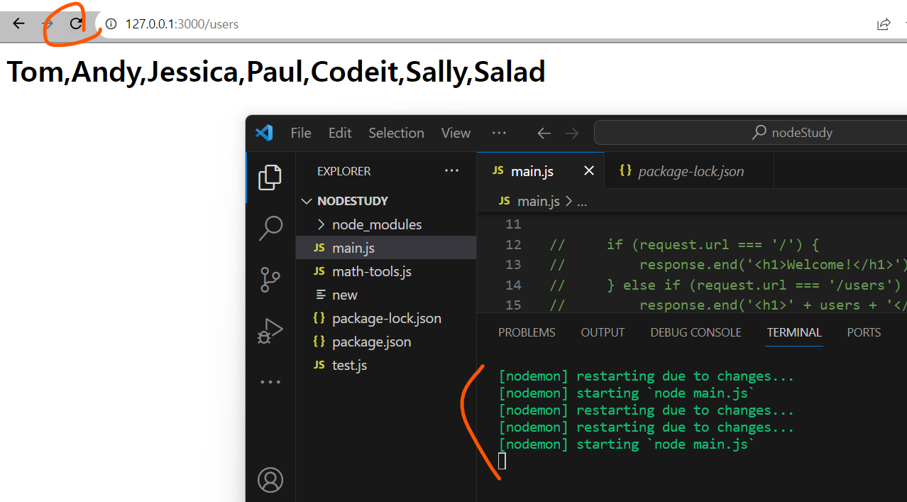 이런 경우 nodemon 패키지를 사용하여 작업의 효율성을 높일 수 있음.