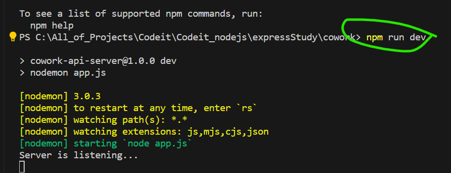 npm dev는 만든 명령어라서 npm run dev라고 써야됨.