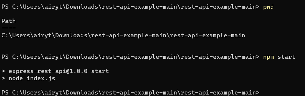 실습 폴더 다운받은 후 터미널에서 node 실행