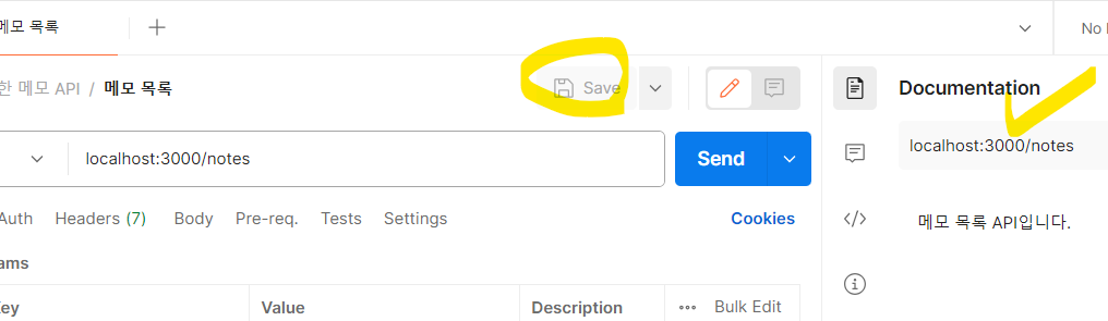 save를 해야 Documentation에 기록되는 것을 확인할 수 있다.