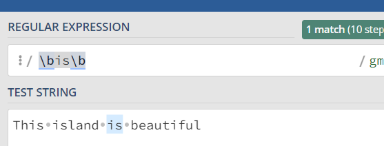 ex. 'This island is beautiful'에서 정확히 'is'만 출력하고 싶은 경우