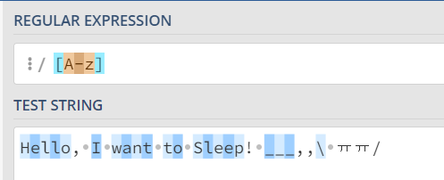 하이픈 문법을 [A-z]나 [A-9]처럼 사용하면 예상하지 못한 결과가 나옴.