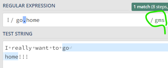 regex101 사이트의 정규표현식 작성 부분은 기본적으로 gm 플래그가 설정되어 있음.