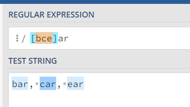 - 대괄호 안에 들어간 문자들은 or 연산이 적용되어 집합 안에 있는 문자 중 하나라도 매칭되면 선택됨.