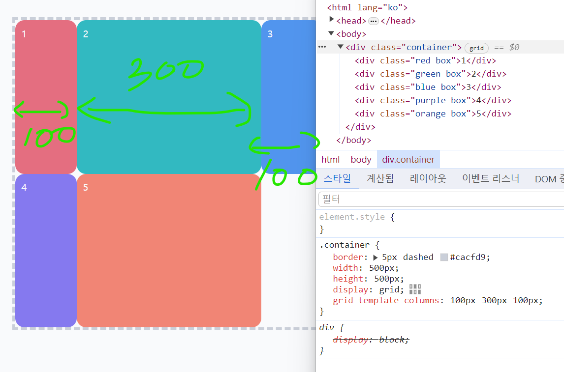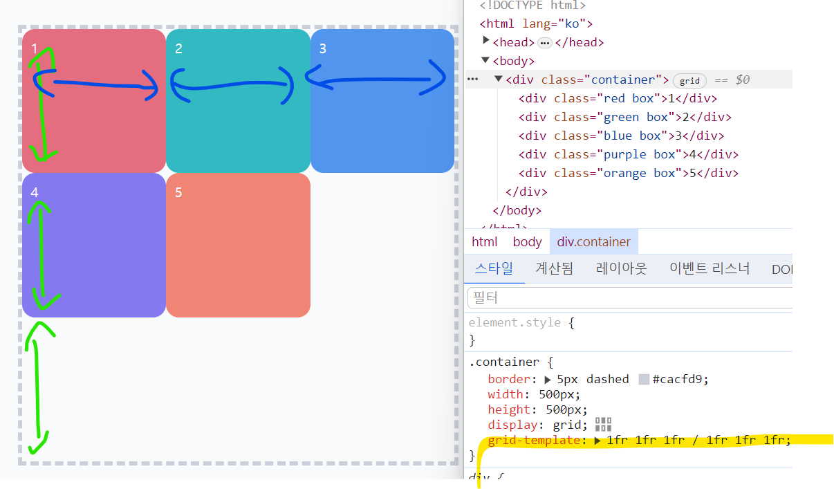 - grid-auto-rows로 다음에 연달아 올 요소들의 높이를 미리 지정해주기