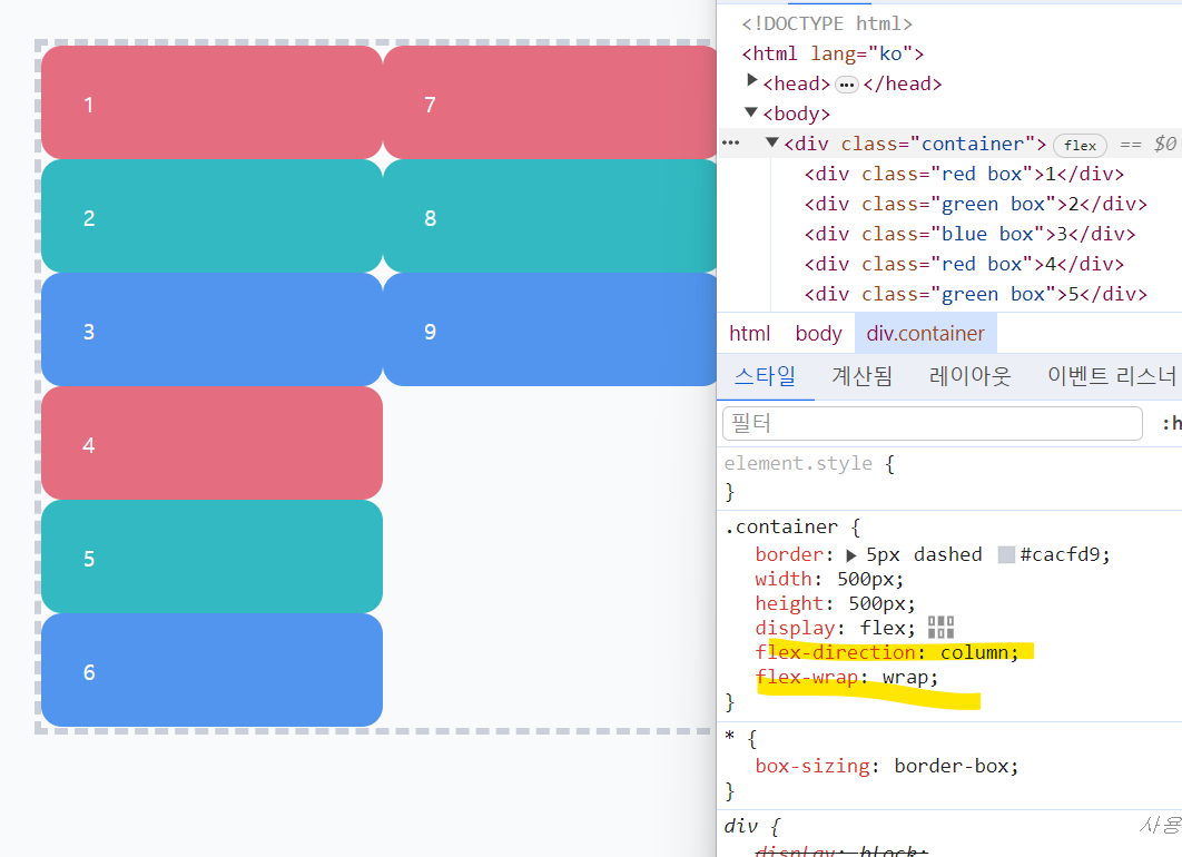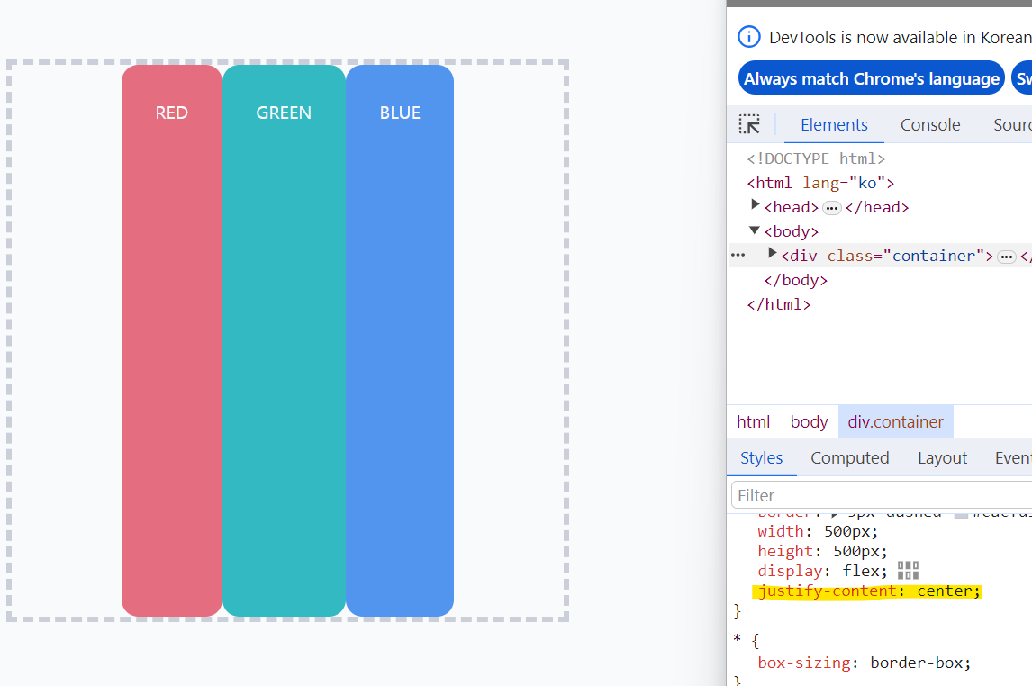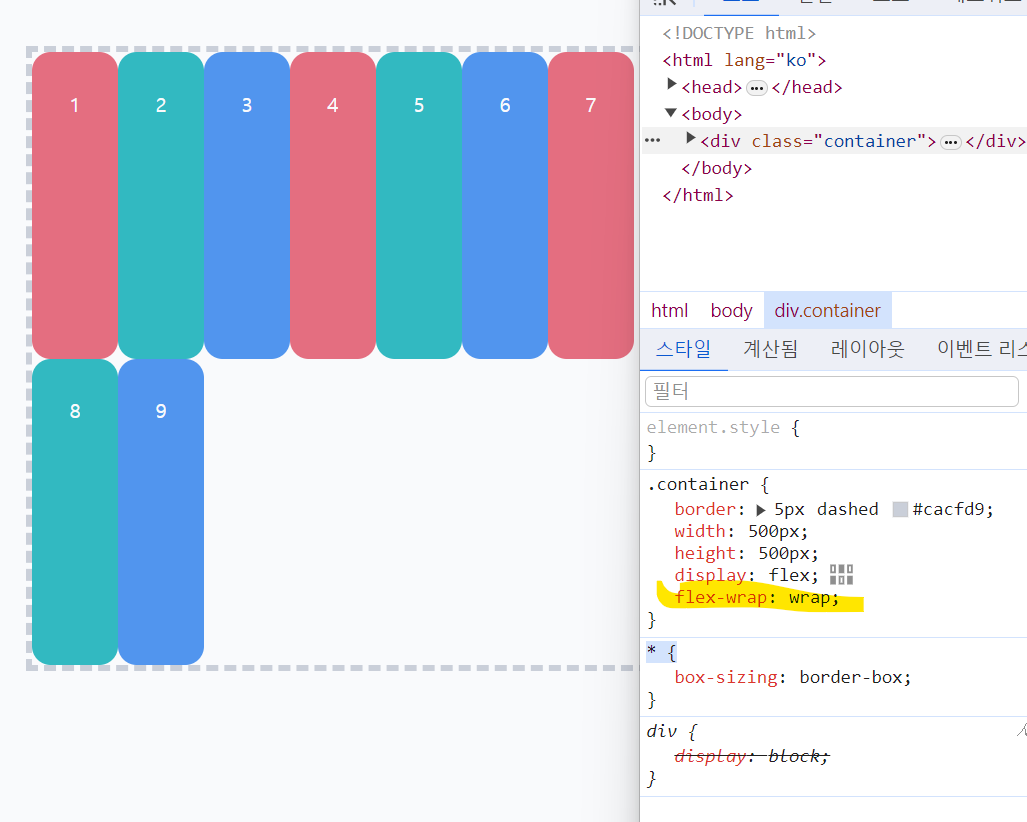인라인요소 안에서 flexbox를 만들고 싶을 때 속성값으로 inline-flex를 지정한다.