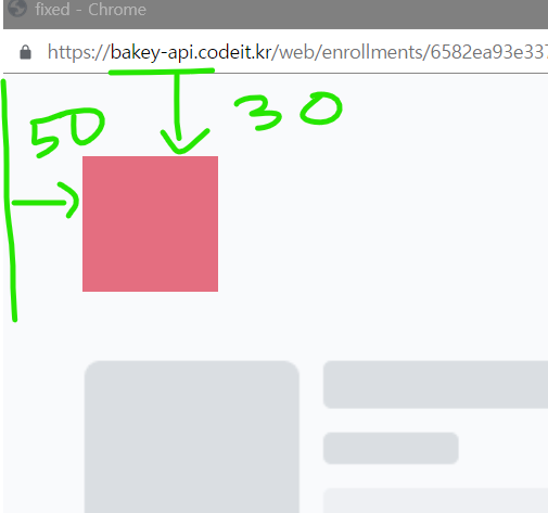 원래 있어야 할 공간에서 위쪽 30px 간격, 왼쪽 50px의 간격이 있도록 함.