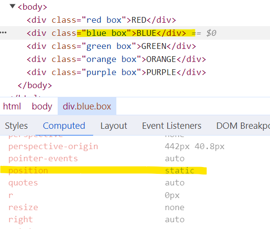 포지셔닝 = static(기본값)이 아닌 다른 속성