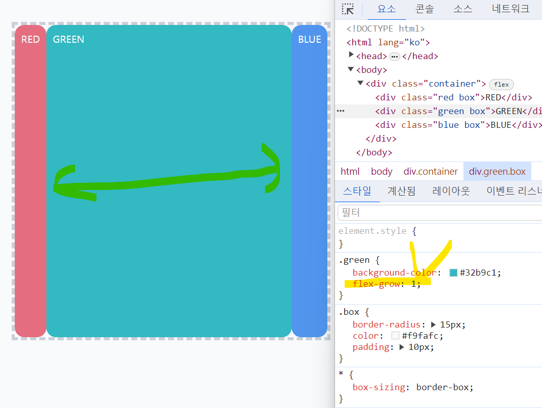 - Flexbox와 무관하게 배치되는 경우 : absolute, fixed (요소의 원래 자리를 차지 X)