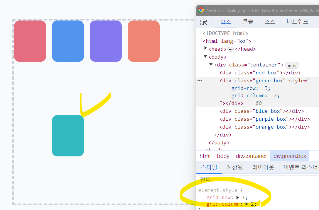 - 원하는 위치에, 여러 칸에 걸쳐서 배치 : grid-row(column), span