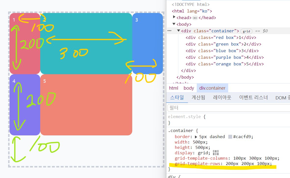 - grid-auto-rows로 다음에 연달아 올 요소들의 높이를 미리 지정해주기