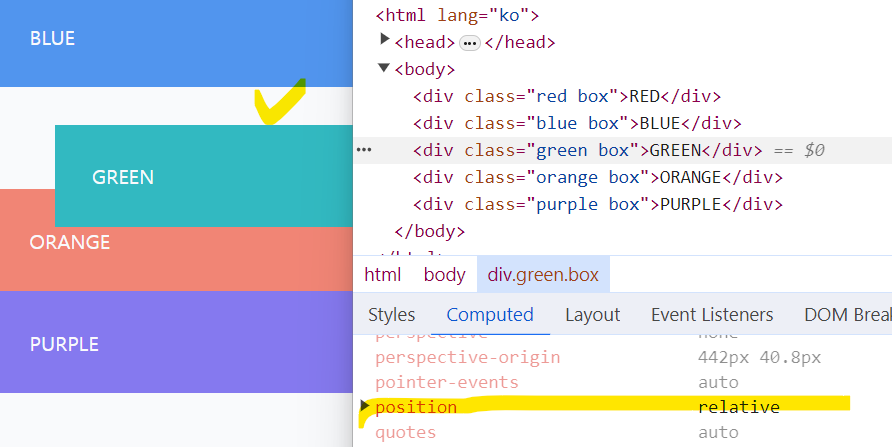 - Flexbox 안에서 배치되는 경우 : relative, sticky (요소의 원래 자리를 차지 O)