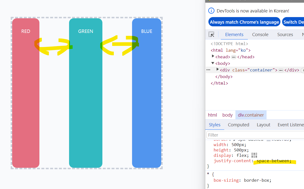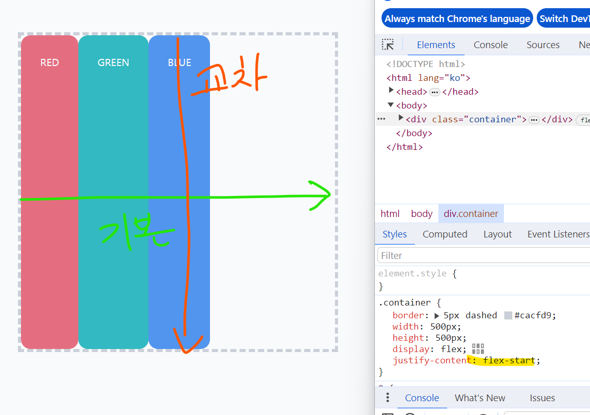 인라인요소 안에서 flexbox를 만들고 싶을 때 속성값으로 inline-flex를 지정한다.