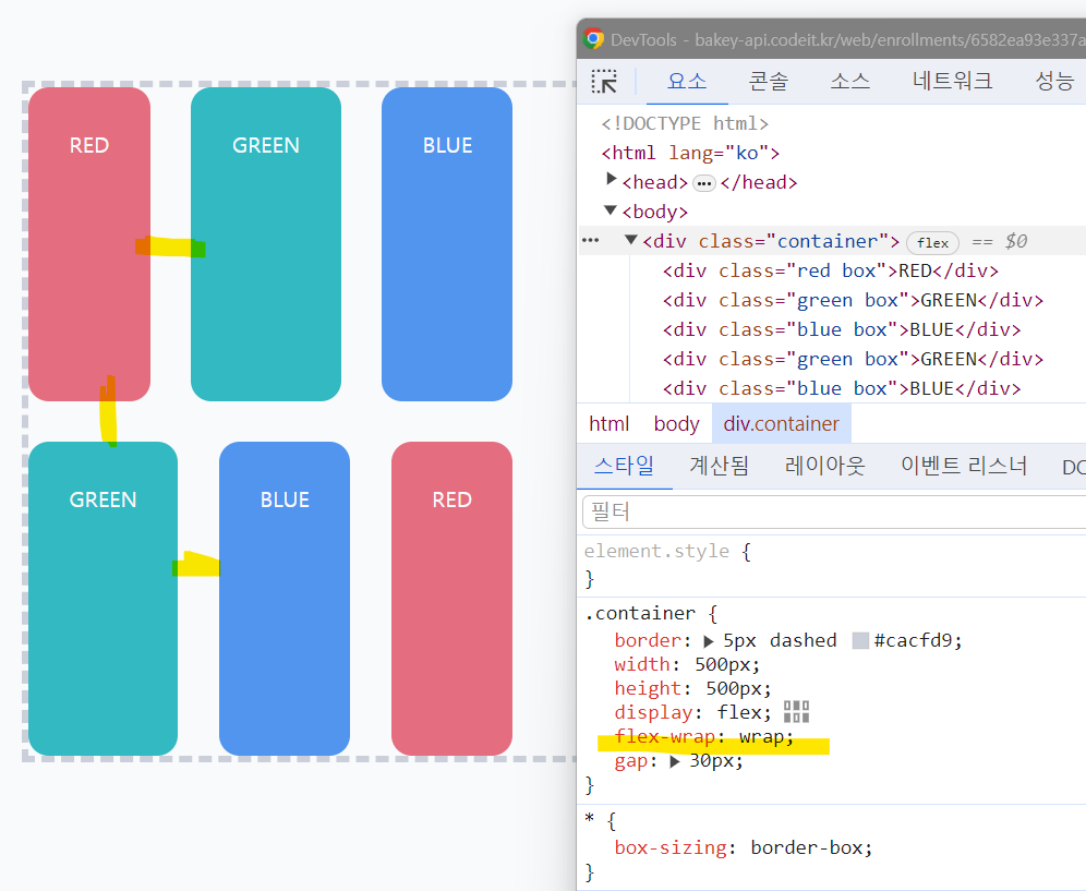 display에 flex를 하는 경우 다음줄로 넘어가버림.