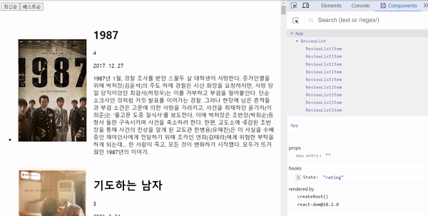 · createdAt에 있을 때는 최신순으로 정렬이 되고,
