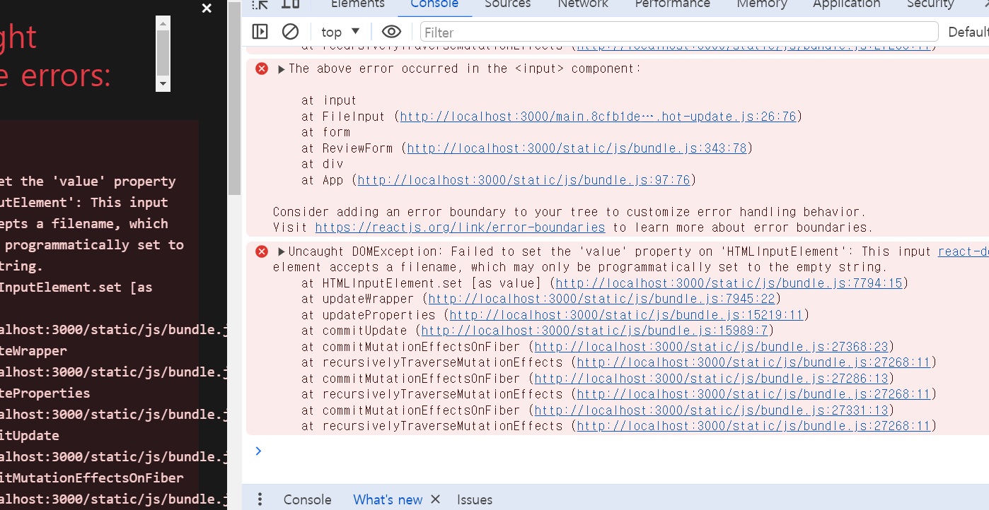- 콜백함수에는 ObjectURL을 만들고 preview State를 변경하는 코드가 있는데, 이때 sideEffect가 발생함.