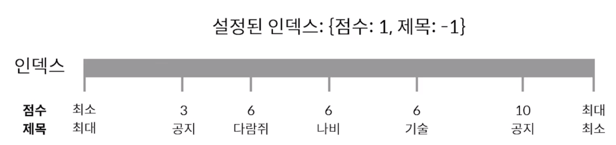 - 복합 인덱스 : 다수의 필드를 기준으로 생성한 인덱스