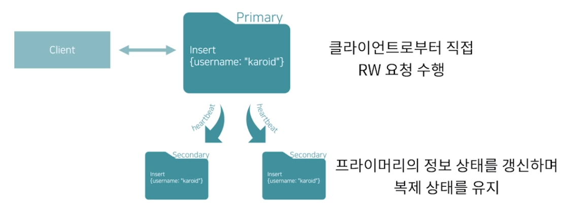 복제 세트는 프라이머리, 세컨더리, 아비터 구성원으로 이루어져 있음.