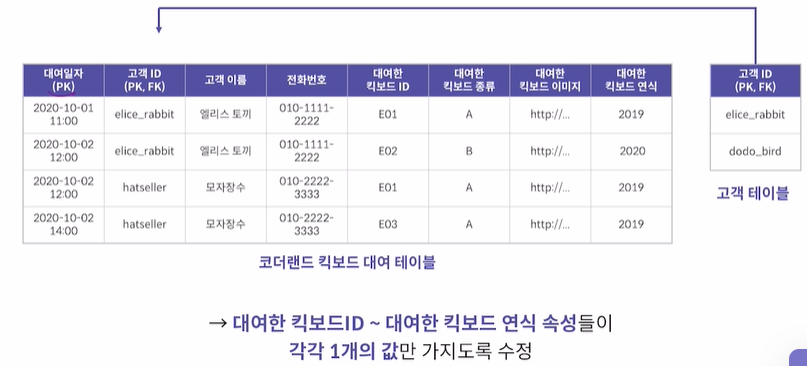 - 테이블 간 데이터 조작 (삽입, 수정, 삭제) 시 발생할 수 있는 이상 현상을 줄이기 위해 하는 작업