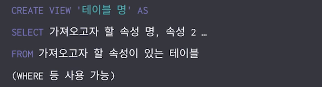 - 하나 이상의 테이블에서 여러 정보를 토대로 만들어지는 가상의 테이블