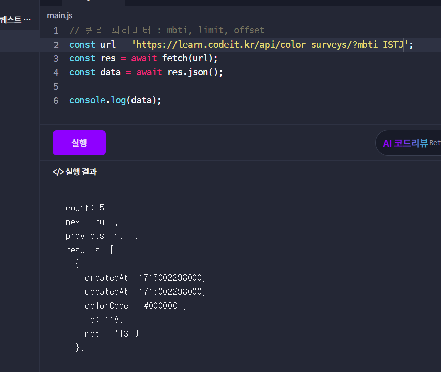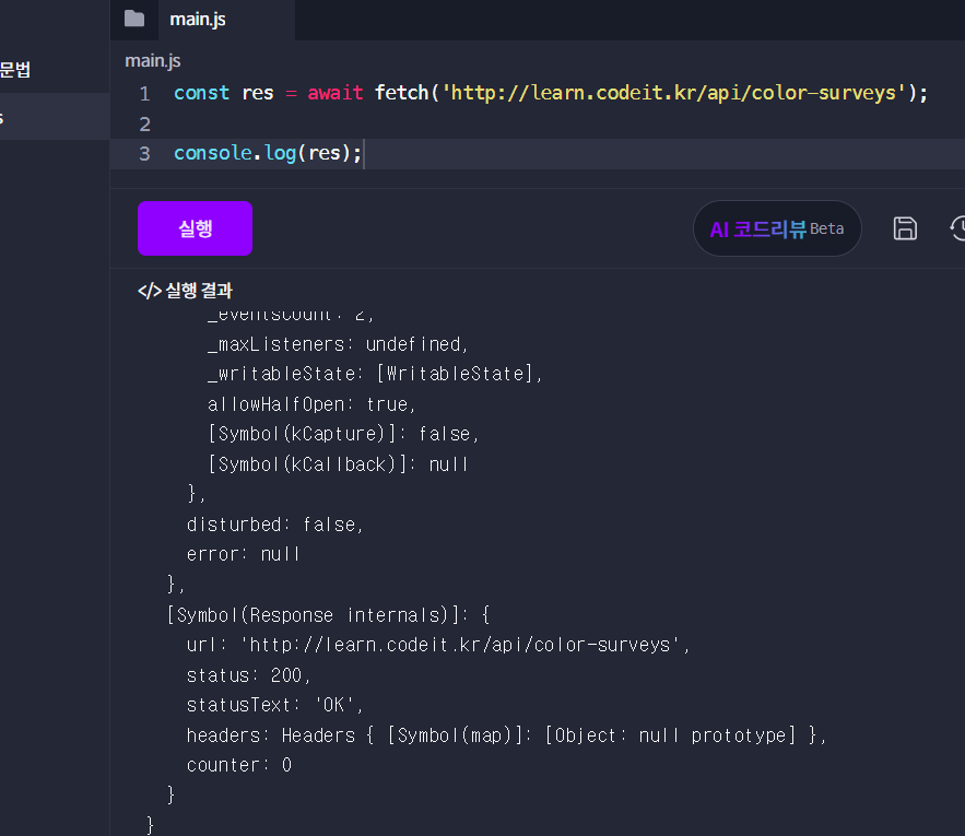 const res = await fetch('http://learn.codeit.kr/api/color-surveys');