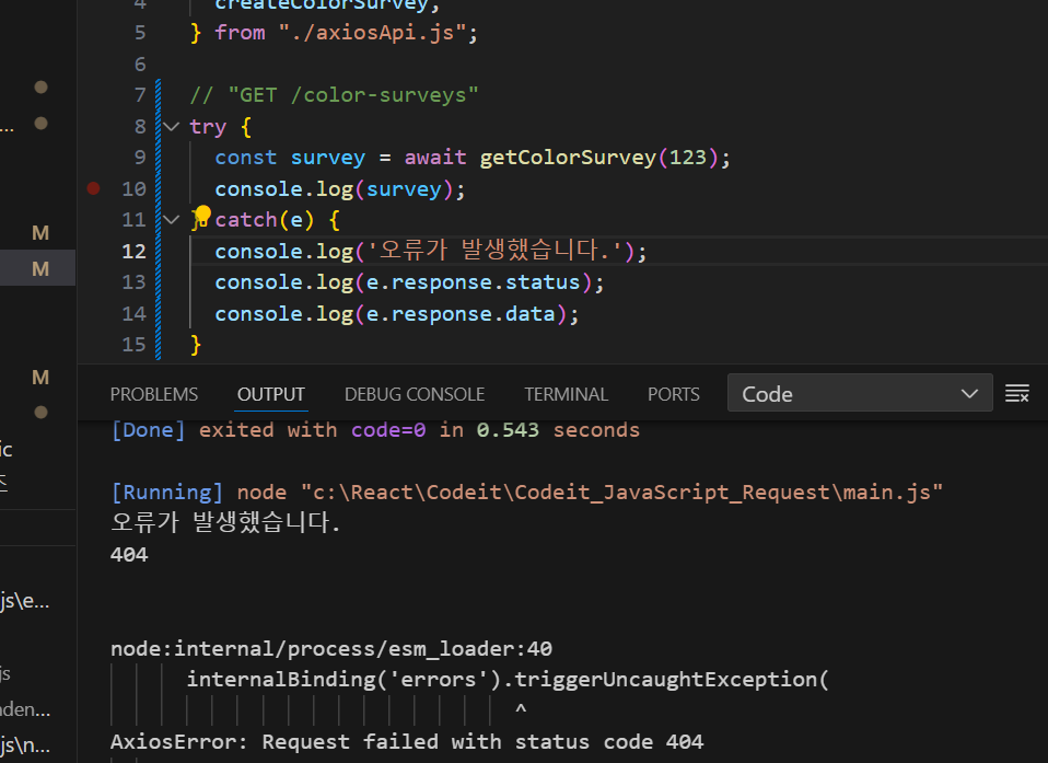 request 자체가 실패해도 오류를 throw, 오류를 나타내는 상태코드가 나와도 오류를 throw함.
