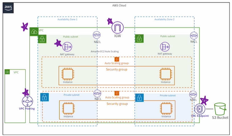 | 보안 | 구성한 서비스들이 악의적인 접근으로부터 충분히 보호받고 있는가? | IAM, Security group, Subnet, NACL, Encryption |