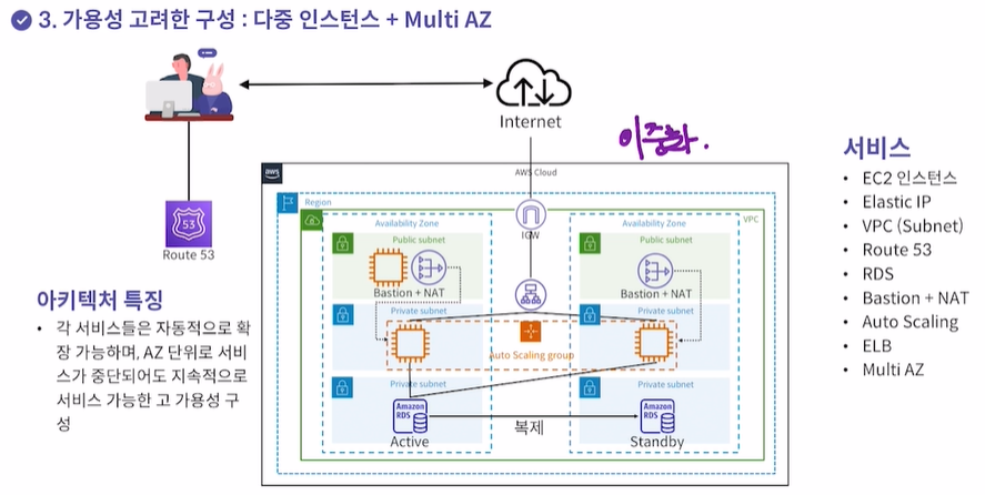 - 가용영역 (AZ) 단위로 서브넷 배포