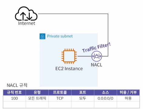 - NACL은 서브넷 레벨에서 트래픽을 관리하는 방화벽