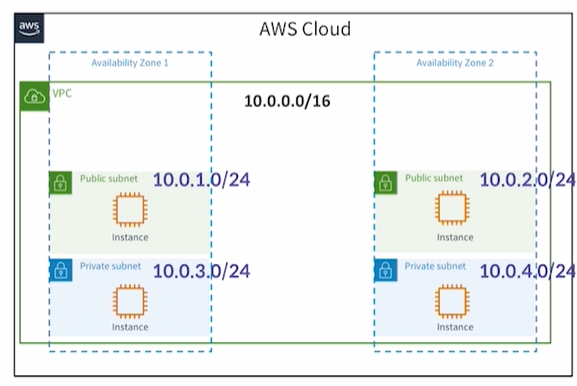 - VPC가 가지는 큰 IP CIDR 블럭을 Subnetting (서브네팅)하여 용도, 목적별로 분리하여 실제 AWS 서비스가 배치되는 곳