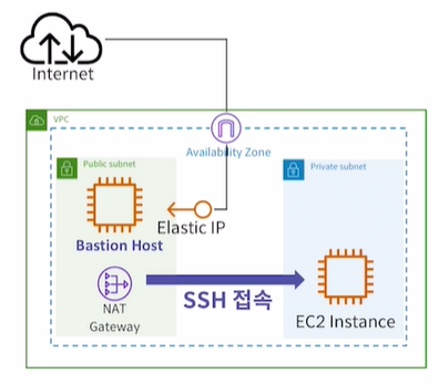 - Bastion Host(요새, 방어막)는 NAT를 통해 해당 인스턴스를 SSH 접속
