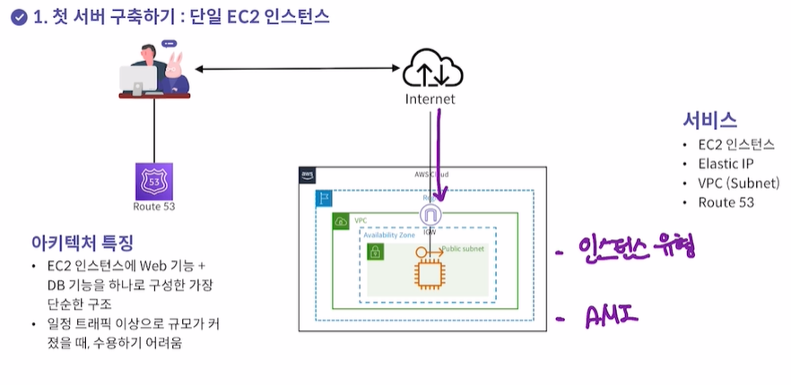 - VPC라는 격리된 AWS 네트워크 환경에서 인터넷 환경과 마주보고 있는 Gateway