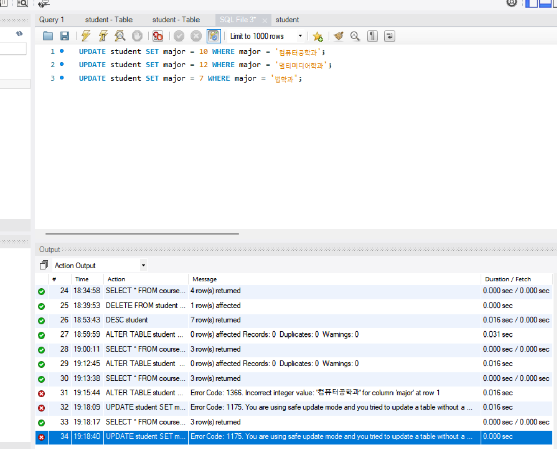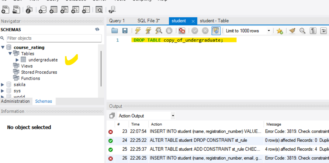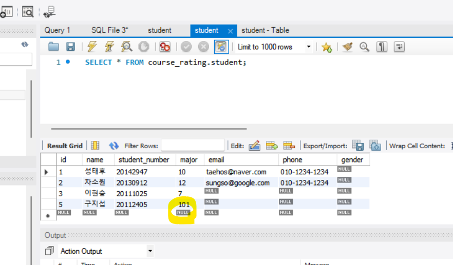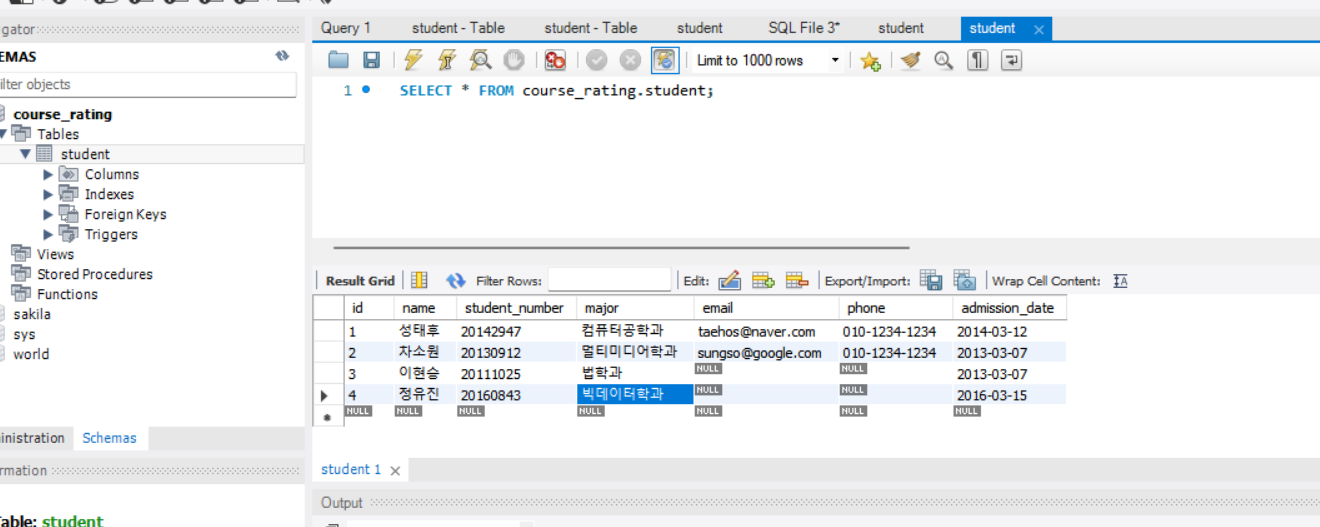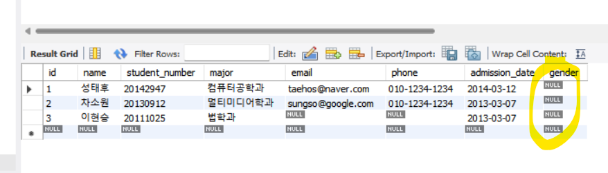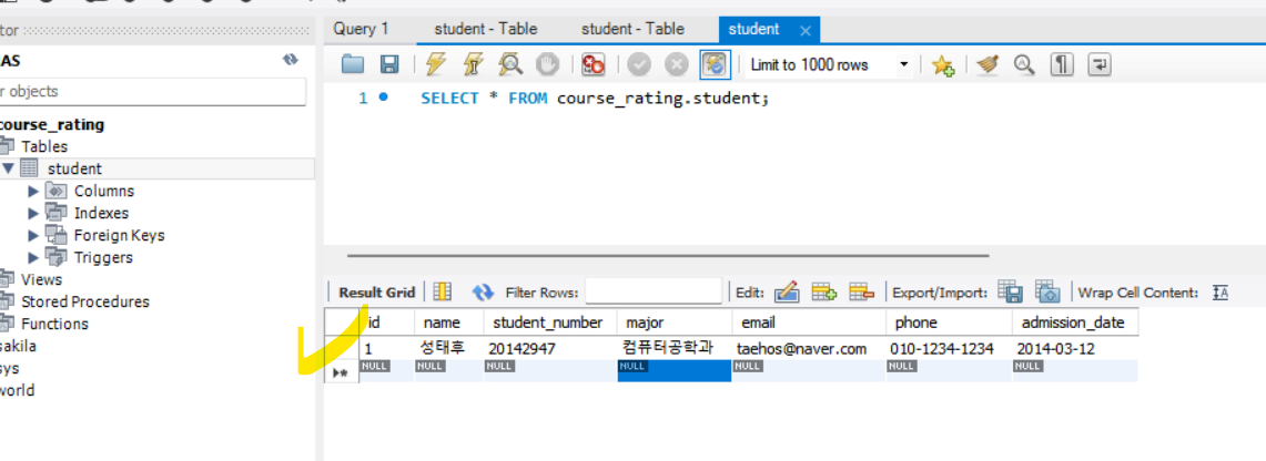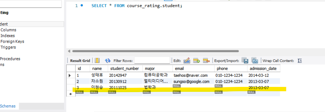 만약 이 상태에서 다시 undergraduate 테이블에 있는 로우들을 가져오고 싶다면