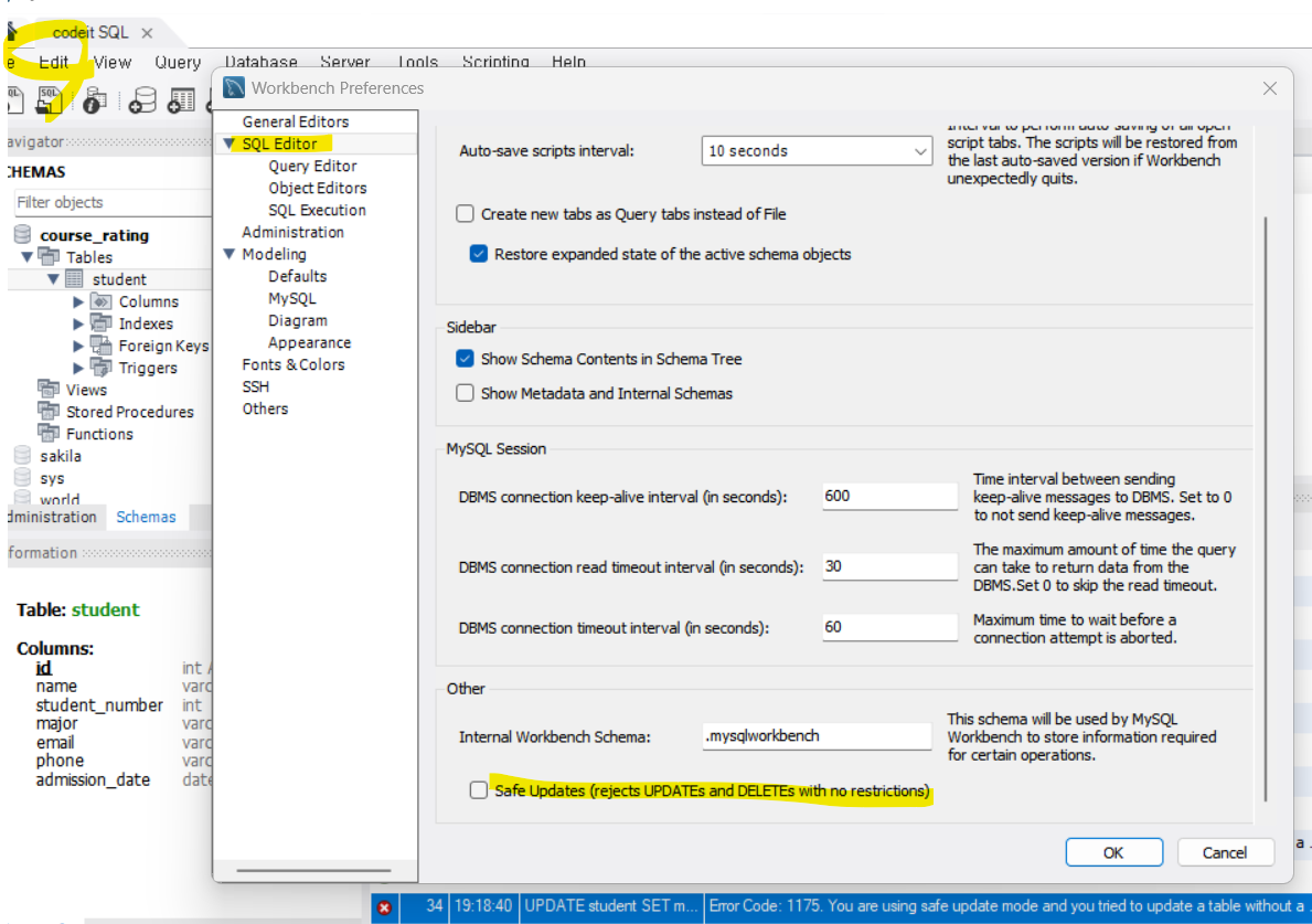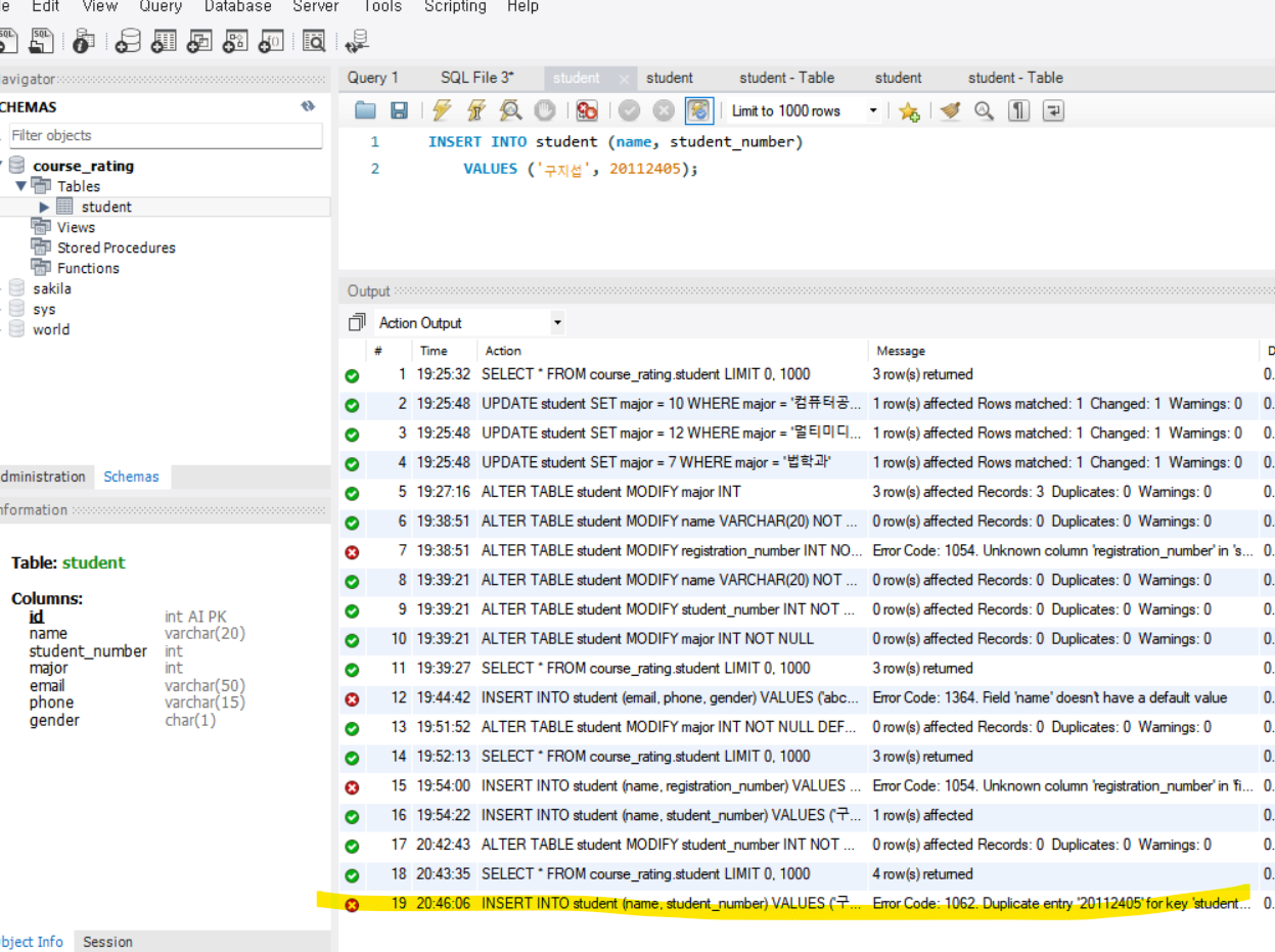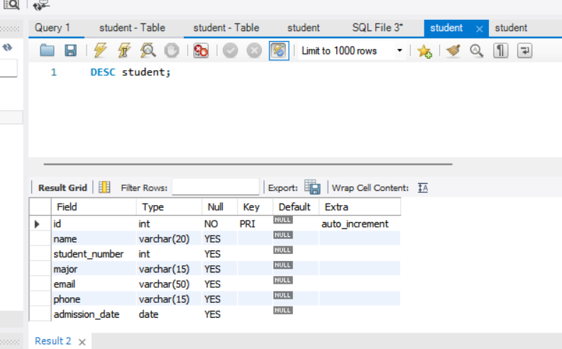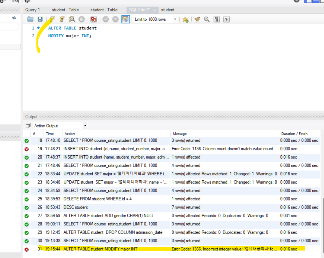 만약 이 상태에서 다시 undergraduate 테이블에 있는 로우들을 가져오고 싶다면