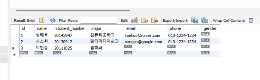 이렇게 로우를 추가할 때는 두 테이블의 컬럼 구조가 일치해야함.