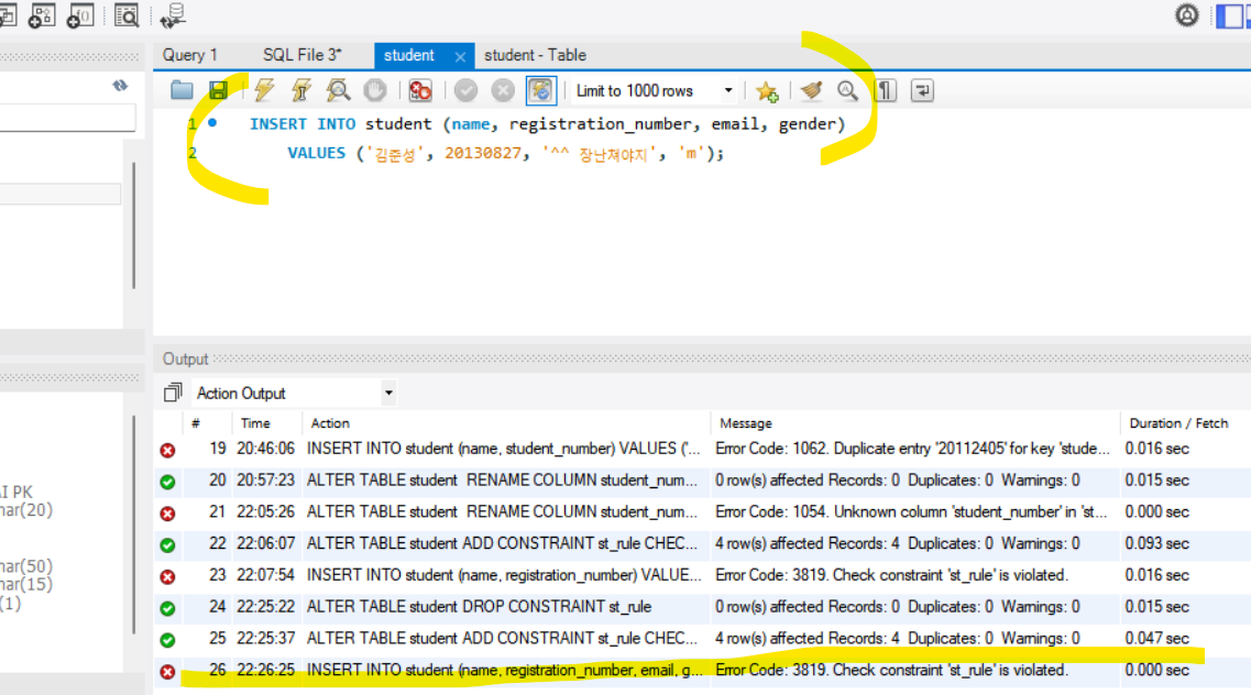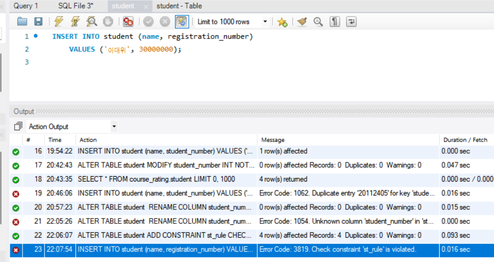 결론 : 참조무결성을 깨는 row는 아예 추가가 되지 않음.