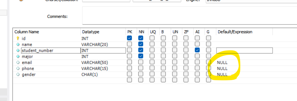 - 이 컬럼에 NULL이 있어도 괜찮음.