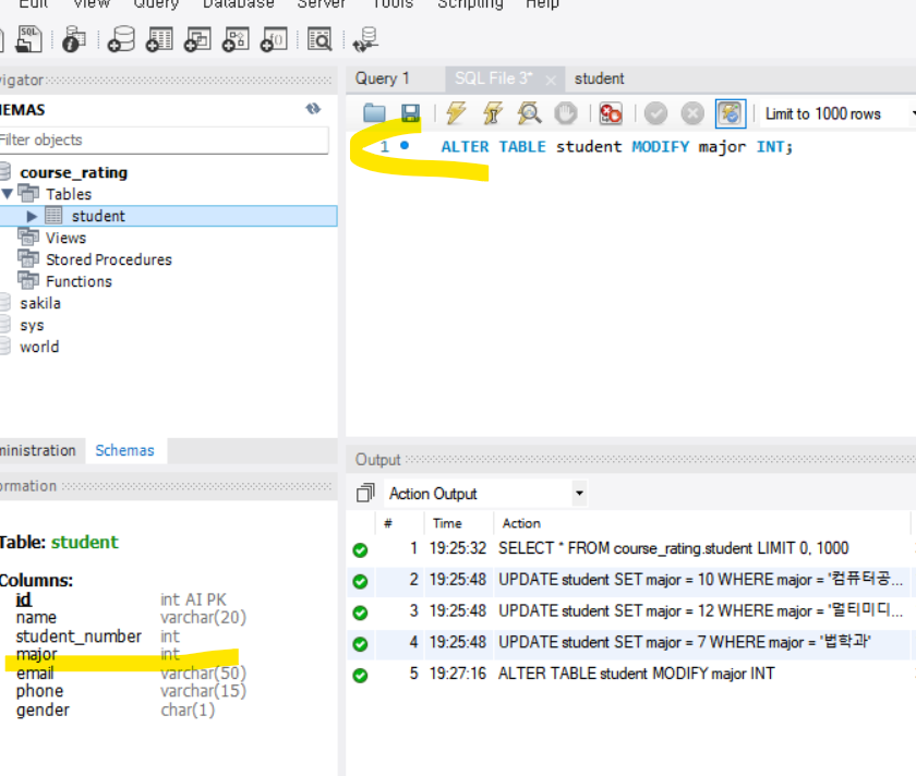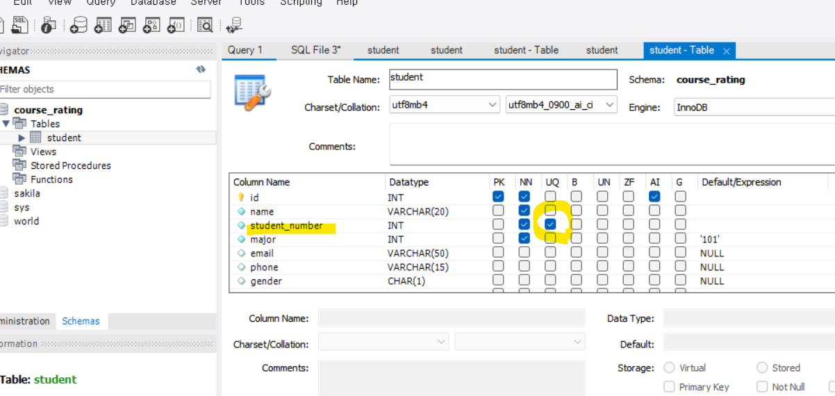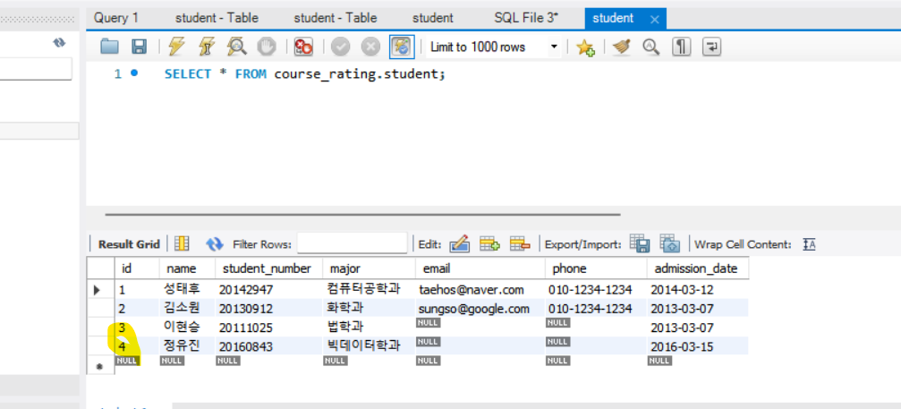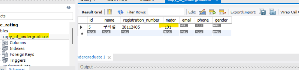 만약 이 상태에서 다시 undergraduate 테이블에 있는 로우들을 가져오고 싶다면