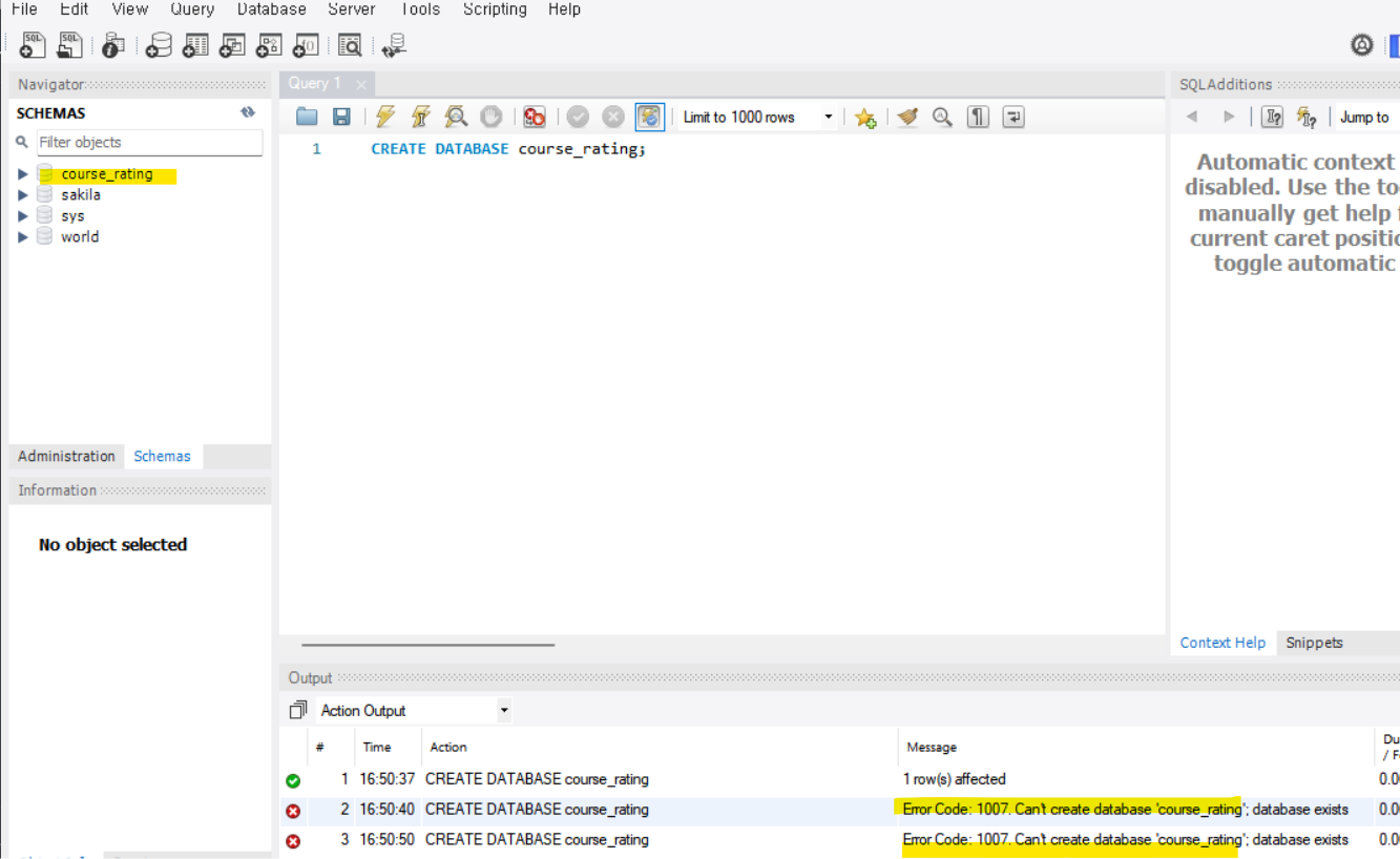 CREATE DATABASE course_rating;